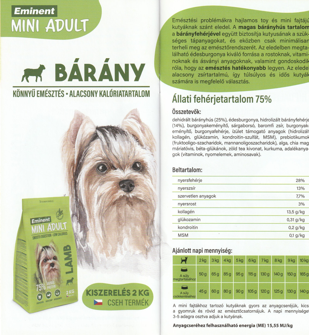Eminent Mini Adult Lamb- bárány - gabonamentes száraz eledel kistestű felnőtt kutyáknak - 2 kg